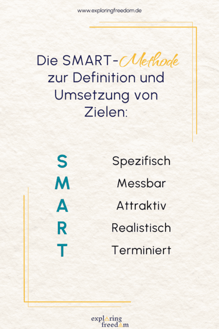 Im Internet hast du die bekannte Zielsetzungsmethode SMART gefunden und so dein Ziel definiert.